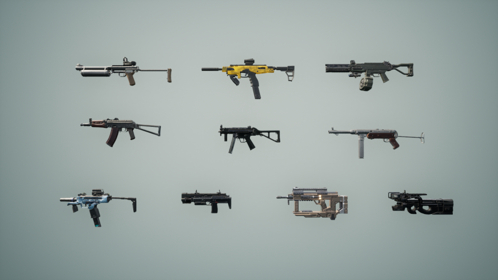 New weapons are finally here. Selecting and adding them in the system took longer than expected, but the process was not a fast one so in the end it was only to be expected. And even thou they are all in the new system there is still work to be done. All of these weapons can be found on the Epic Games Marketplace, and of all the weapons added I think only 4 came free as part of the “Permanent Collection Unreal Engine Sponsored Content for November 2018…” and so on. Rest was pretty much premium and purchased for the purpose of adding more features to the new game version. Some assets came with animations some didn’t, but for now no animations are applied to the weapons. For the missing animations (and there is a lot of them) there is just not enough funds to make them all. So, for now weapons will be implemented as is, with no reload or fire animations (hands and weapon) and for some even without the proper idle animations (the launchers in particular). But in the future, who knows…
